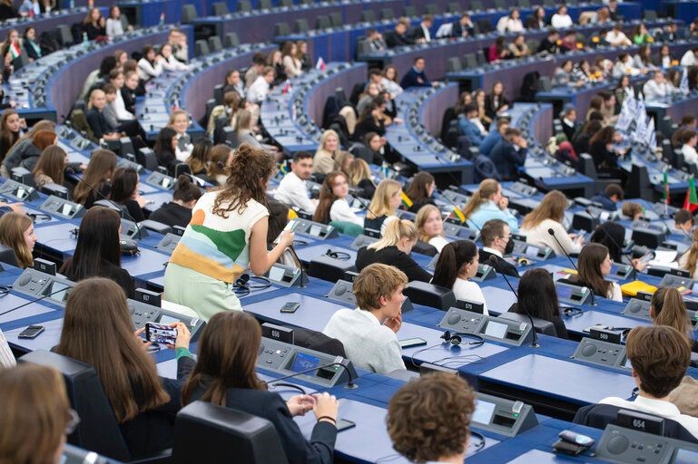 Bij het Euroscola-programma komen leerlingen uit heel Europa samen in Straatsburg om de Europese parlementaire democratie in de praktijk te ervaren.